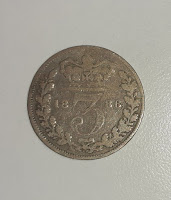 | Reverso de threepence de 1886 |